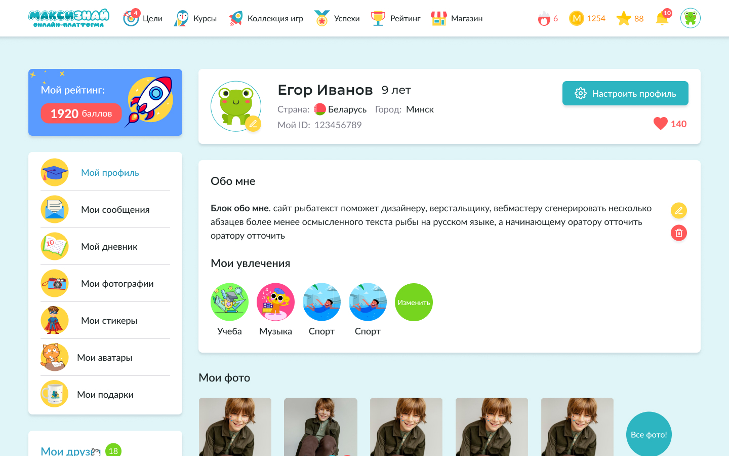 На платформе представлено более 9 полноценных курсов, разработанных с учетом возрастных особенностей детей: